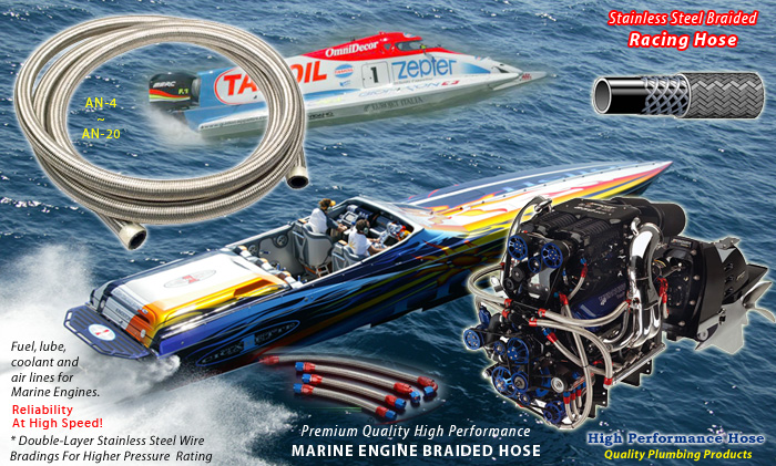Racing marine engine stainless steel braided hose offers unsurpassed levels of performance and reliability for your tough competition applications.     Performance Racing Hose Size: -4 , -6 , -8 , -10 , -12, -16, -20 AN